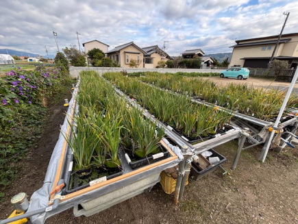 年が明け寒い日が続いてますが苗たちは元気に寒さに耐えております。花菖蒲は寒さに強い花で、葉は枯れていますが、株は元気です。2~3月には新芽が現れるのを楽しみに待ちましょう。